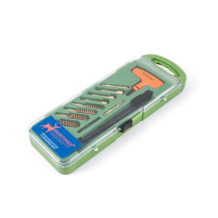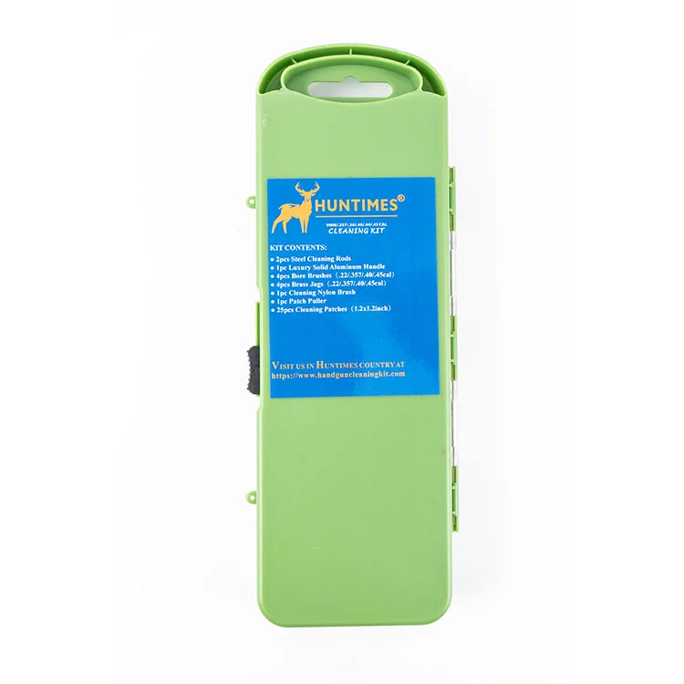 Our 9MM/.357/.38/.40/.44/.45 Caliber Cleaning Kit designed for your pistol and features OEM custom grip logo and packaging. This versatile cleaning kit is perfect for hunting enthusiasts and comes with a set of accessories tailored to your specific needs. The kit includes two brass cleaning rods, a durable plastic handle, a cleaning nylon brush, twenty-five cleaning patches, four chamber brushes of different calibers, four brass serrations, a plastic patch puller, and a brass patch puller.
