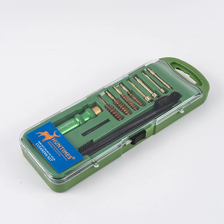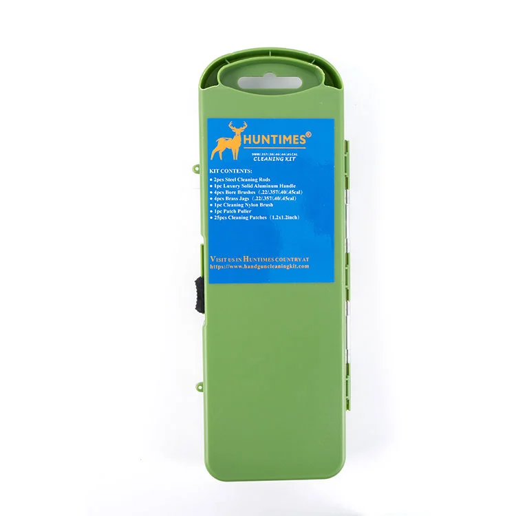 Our Aluminum Alloy Handgun Cleaning Kit contains 2 steel rods, 1 deluxe aluminum handle, 4 bore brushes (. 22/. 357/. 40/. 45), 4 brass tips (. 22/. 357/. 40/. 45), 1 nylon cleaning brush, 1 patch puller, and 25x1. 2x1. 2 cleaning patches. It designed for optimal performance and long-lasting durability. The handle logo, the sticker logo on the front of the box, and the product details logo on the back can all be designed according to your needs. Welcome to consult us !