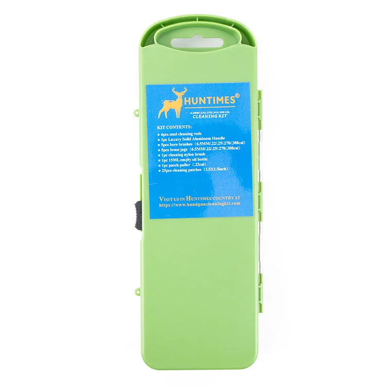 Our premium aluminum alloy material rifle cleaning kit designed with durable aluminum alloy structure. Its basic features include: - 4pcs steel cleaning rods - Deluxe solid aluminum custom handle - 5pcs bore brushes in 6. 5MM/. 22/. 25/. 270/. 308cal size - 5pcs brass tips in 6. 5MM/. 22/. 25/. 270/. 308cal size - 1pc cleaning nylon brush with 8-32 thread - 1pc 15ml empty oil bottle - 1pc . 22cal patch puller - 25pcs cleaning patches (1. 5x1. 5 inch).